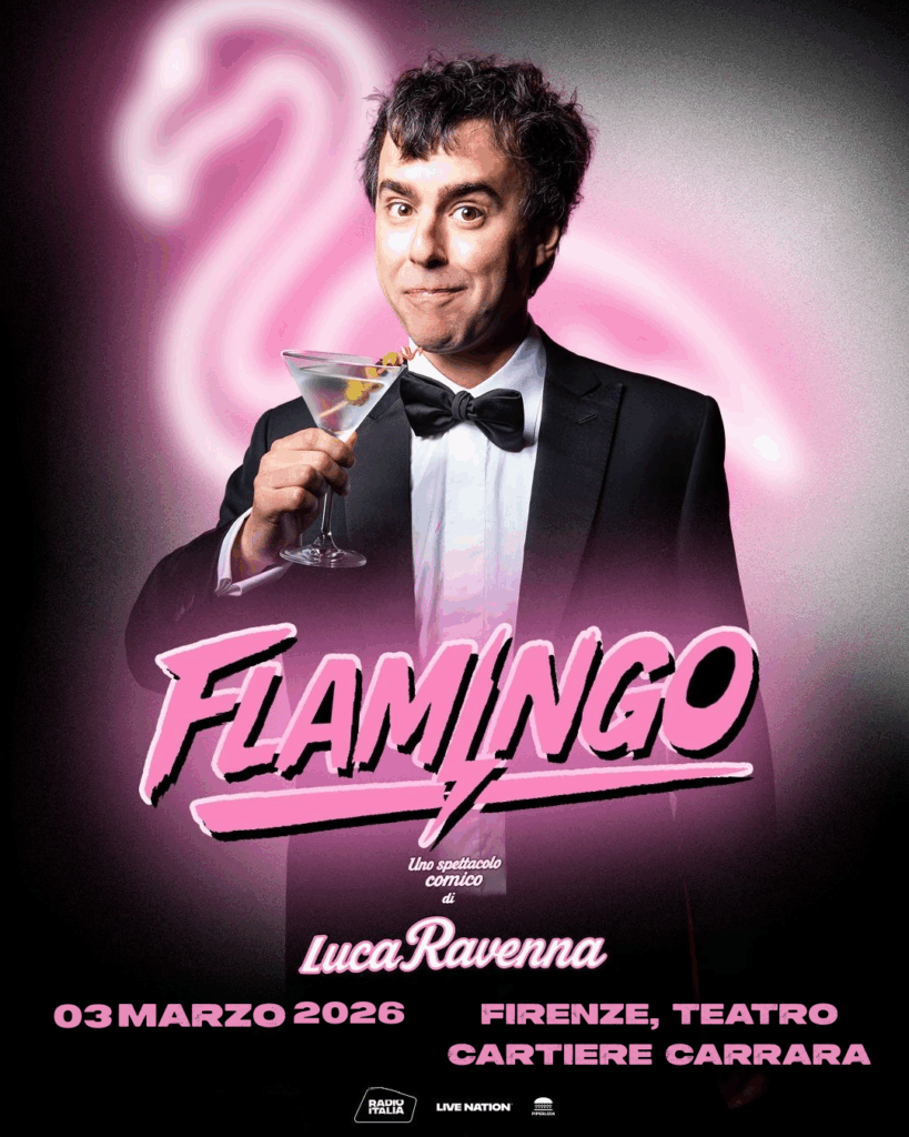 A grandissima richiesta Luca Ravenna annuncia nuove date di FLAMINGO, il nuovo spettacolo comico dello stand-up comedian dei record da gennaio 2026 nei teatri di tutta Italia – prodotto da Live Nation. A distanza di mesi dall’inizio del tour, hanno già registrato il tutto-esaurito gli appuntamenti del 23 e 24 gennaio al Teatro Colosseo di Torino a cui si aggiunge quindi il 22 gennaio, quelli del 9, 10 e 11 febbraio al Teatro degli Arcimboldi di Milano a cui si aggiungono il 18 e 19 aprile, quelli del 27 e 28 febbraio all’Auditorium Conciliazione di Roma a cui si aggiunge il 26 febbraio, e quelli del 18 e 19 marzo al Teatro Celebrazioni di Bologna a cui si aggiunge il 17 marzo. Arricchiscono il calendario anche le nuove date del 23 febbraio al Teatro Cartiere Carrara di Firenze, del 13 aprile al Teatro Regio di Parma e del 23 aprile al Nuovo Teatro Carisport di Cesena.