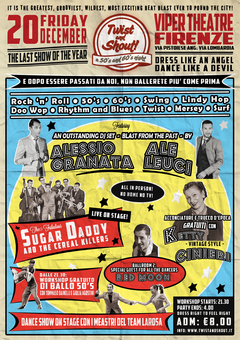 Ladies and Gentlemen: ultimo appuntamento dell’anno a Firenze per la serata che ha cambiato il modo di ballare di migliaia di persone in tutta Italia. Indossate il vostro vestito migliore, lucidate le scarpette, prendete sottobraccio il vostro partner e venite a godervi lo spettacolo più esplosivo mai capitato in città! E vi promettiamo che dopo essere passati da noi, non ballerete più come prima.