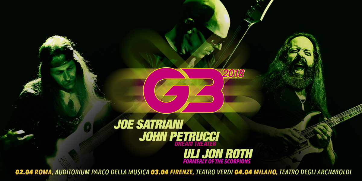 G3 è il nome del progetto fondato da JOE SATRIANI nel 1995, che riunisce i migliori chitarristi contemporanei in un tour itinerante con cadenza (quasi) annuale. Yngwie Malmsteen, Steve Morse e Steve Vai fra gli altri hanno fatto parte di questo progetto negli anni. E’ con grande entusiasmo ed orgoglio che annunciamo la nuova edizione del 2018 che vedrà protagonisti JOE SATRIANI, JOHN PETRUCCI (Dream Theater) e ULI J. ROTH (ex-Scorpions) in tre date italiane il prossimo Aprile. Ognuno dei tre chitarristi si esibirà in un set “personale” per poi dare il via alla grande jam finale… Lo show durerà quattro ore… Ne vedremo delle belle!