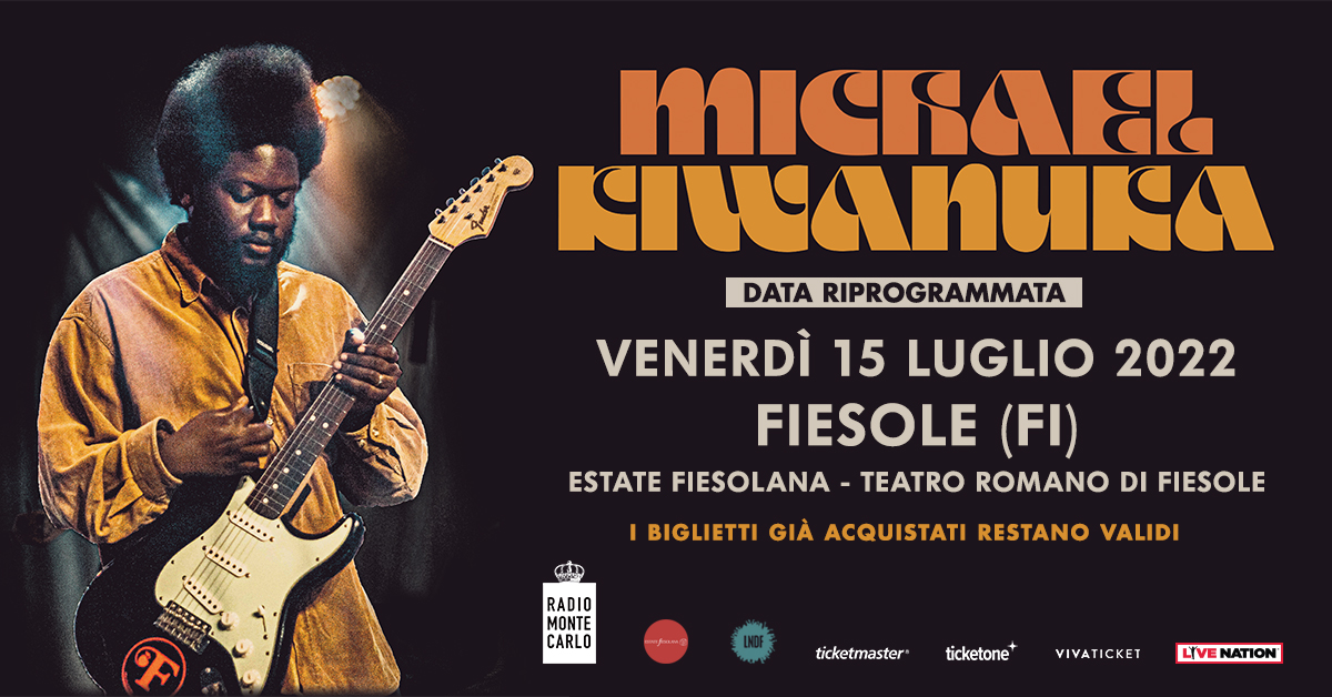 I concerti di Michael Kiwanuka del 23 luglio 2020 a Roma e del 24 luglio 2020 a Gardone Riviera (BS), cancellati a causa emergenza sanitaria Covid-19 e poi spostati rispettivamente al 16 luglio 2021 e al 15 luglio 2021 con l’aggiunta della nuova data prevista il 17 luglio 2021 a Fiesole (FI), sono stati riprogrammati per giovedì 14 luglio 2022 al Festival TENER-A- MENTE di Gardone Riviera (BS), per venerdì 15 luglio 2022 al Teatro Romano di Fiesole (FI) in occasione dell’Estate Fiesolana e per sabato 16 luglio 2022 al Roma Summer Fest di Roma presso la Cavea Auditorium.