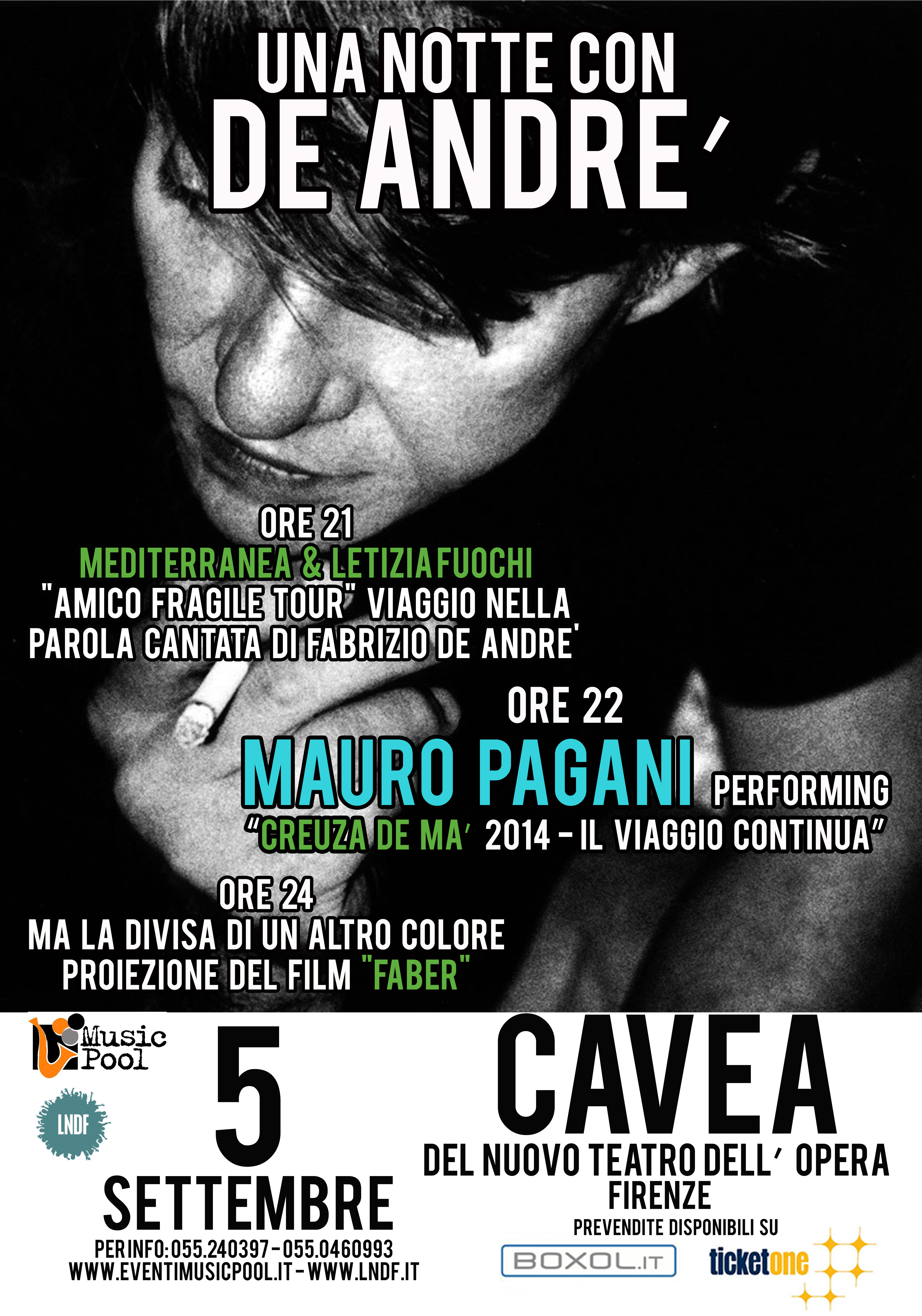A quindici anni dalla scomparsa del cantautore genovese, una notte alla Cavea del Nuovo Teatro dell’Opera di Firenze per celebrarlo, ricordarlo, e godere ancora della sua musica. Ad accompagnarci in questo viaggio Mauro Pagani, che ha lavorato gomito a gomito con Faber per decenni.